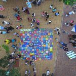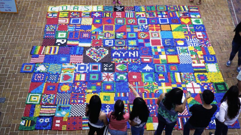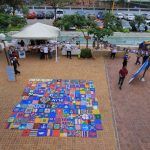 En el centro de La Bota, en el Malecón del Salado, se extendió sobre el piso un gran tapete de colores. Todo se juntó, tras varias horas y días de trabajo, en el suelo y a la mirada de los visitantes. Los cuadros 11 x 11 con alambres, perforaciones y tapas fueron reciclados por voluntarios, empresas y en recolecciones de Mingas Por El Mar. Y con ello, su ejecución desde colegios, personas independientes y otras organizaciones se unieron a su proceso.