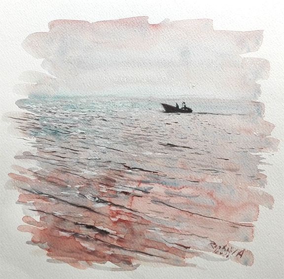 Al principio pintaba muchos barcos, con velas grandes y extensos mares, me llamaba la atención el espacio infinito del mar, el viento, esa dimensión amplia de un paisaje. Trato de comunicar paz, bienestar, un espacio que sea amplio, aéreo, atmosférico en el cual se pueda respirar aire.